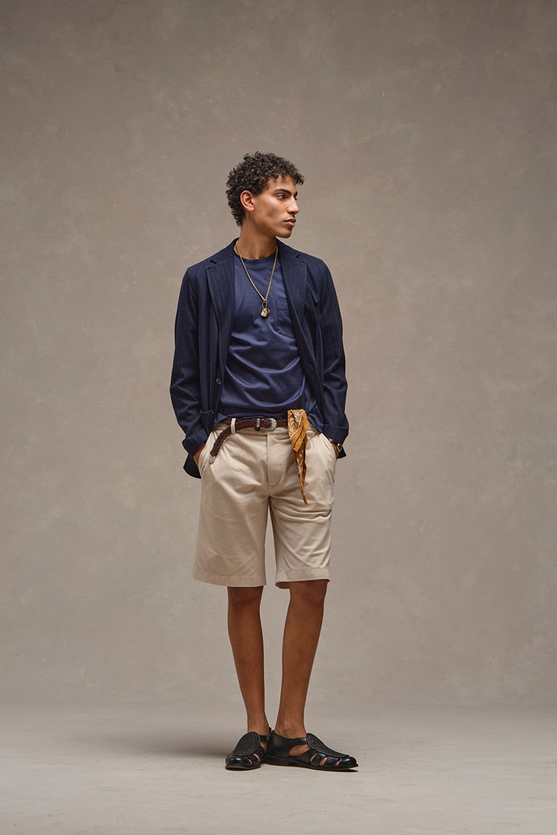 テイラーメイドカットのジャケットやパンツを、ユニークなダイイングテクニックにより様々なエフェクトを与えた異なるファブリックで展開。 ファブリックのオリジナリティは、その新鮮なヴィジュアルと快適な風合いにあり、滑らかな手触りと高いストレッチにより、従来の古典的なテイラリングウェアでは感じることのできない着心地の良さを実現しています。