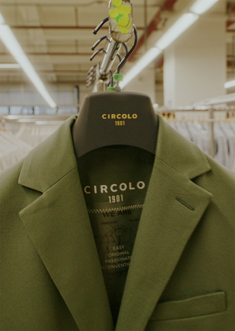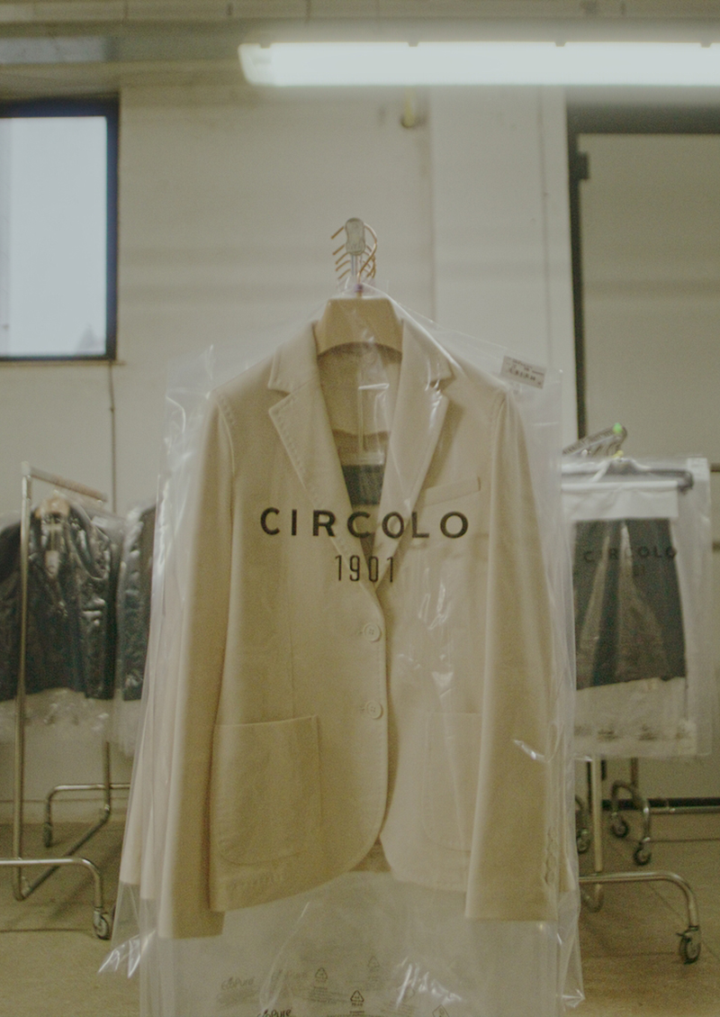 最初のジャージージャケットは、2009年秋冬の同ブランドのファーストコレクションとして発表され、すぐに、CIRCOLO 1901コレクションの主要な製品となりました。テイラーメイドのスタイルにプリントやダイイングテクニックで様々な異なる表情を与えた“ジャージーのようなジャケット、ジャケットに見えるジャージー”としてCIRCOLO 1901のイージージャケットが誕生しました。